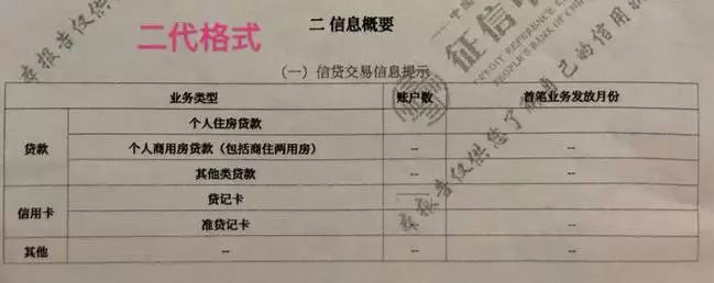 新旧两版报告的第二大部分都是信息概要,其中第一项也都是被查询人的个人贷款和信用卡信息的概要,包括个人房贷笔数、个人商用房贷款(包括商住两用房)贷款笔数、其他贷款笔数、贷记卡账户数、首笔贷款发放月份、首张贷记卡发卡月份等信息。