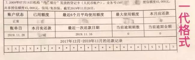 不过,阿拉伯数字的含义就不同了。旧版报告中,1表示未还最低还款额1次;2表示连续未还最低还款额2次;以此类推,最大为7,表示连续未还最低还款额7次及以上;