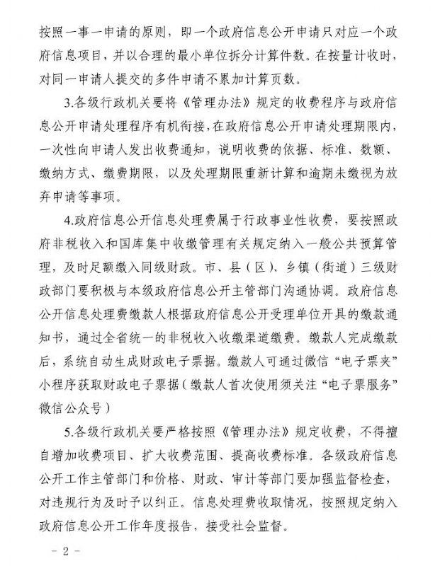 关于做好政府信息公开信息处理费收取工作的通知